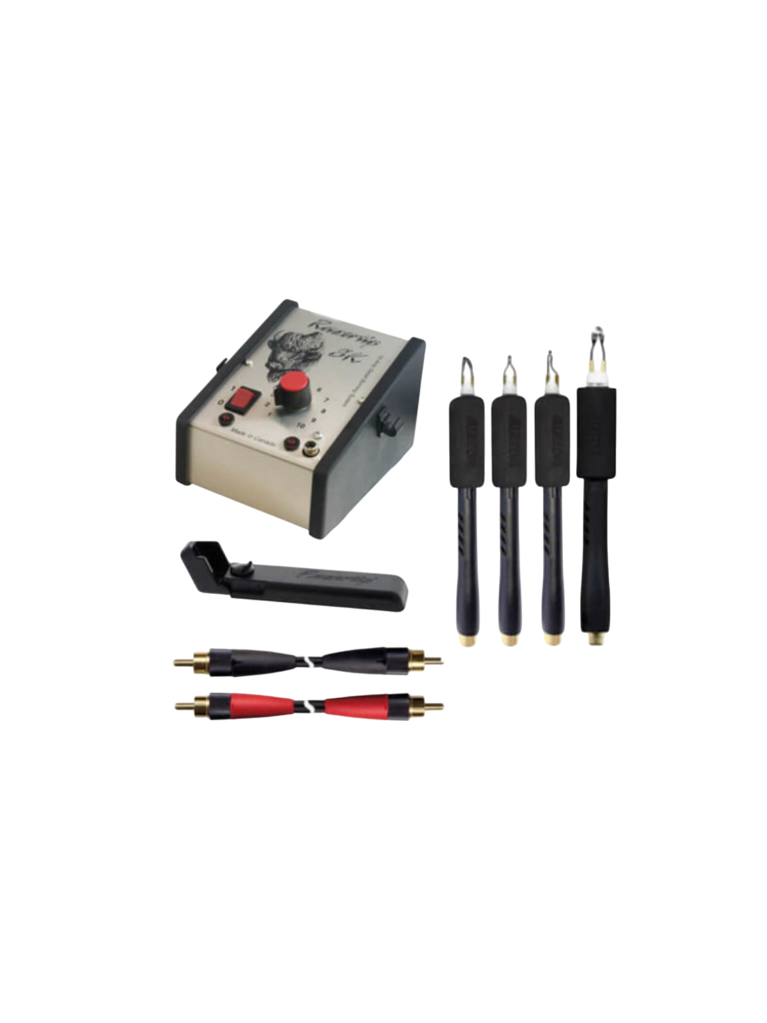 The Razertip SK pyrography starter kit contains the most useful pens/tips/cords for pyrographers.